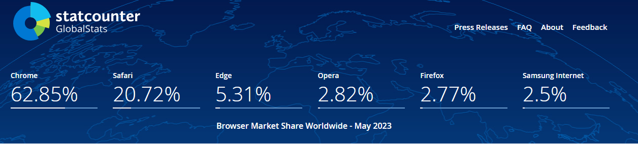 Just like with most other software and online services, the browser market is entirely and completely dominated by ‘big tech’ with Chrome by Google and Safari by Apple used by more than 80% of people globally to browse the web.