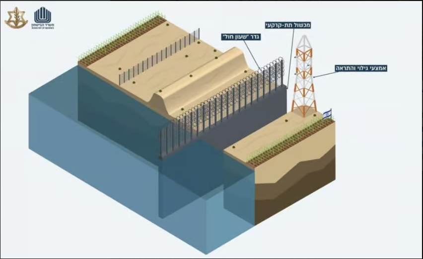 - Underground barrier going “tens of meters underground” with various physical and technological means to prevent digging underneath it.