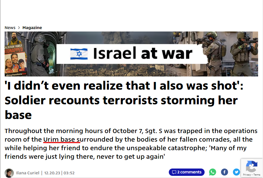 Staying on the topic of the Observation soldiers, here is a testimony from the father of another observation soldiers given on Israeli radio a day after the attack on October 8 and discussing the allegations that five observation soldiers were loaded on a Helicopter and haven’t been seen since!