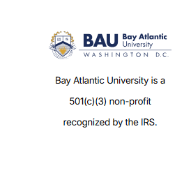Bay Atlantic University is a private, non-profit university in Washington, DC that offers higher education programs to domestic and international students at its centrally located campus, just a short walk from the White House. Bay Atlantic University is established as a New Generation University which is defined by six key aspects: Affordable, Focused, Global, Connected, Central and Dynamic; aspects that are measured within the strategic planning process.