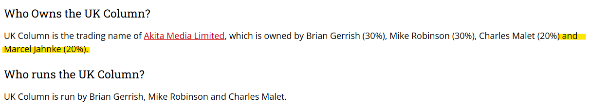 Based on corporate filings by Akita Media Limited, which is the entity behind UK Column ("UK Column" is its trading name), Mr. Jahnke acquired his stake at UK Column through a corporate structure he controls called YMS Market Access: