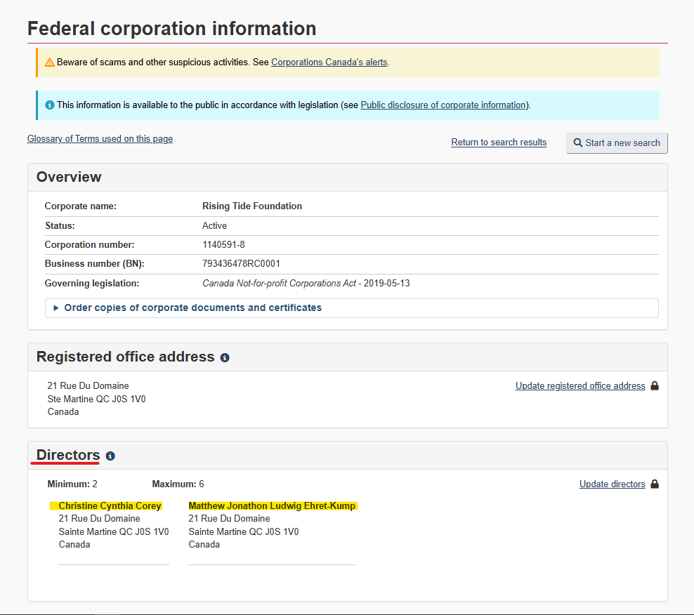 While RTF's official filings with the Canadian Government contain only two directors, their website names three.