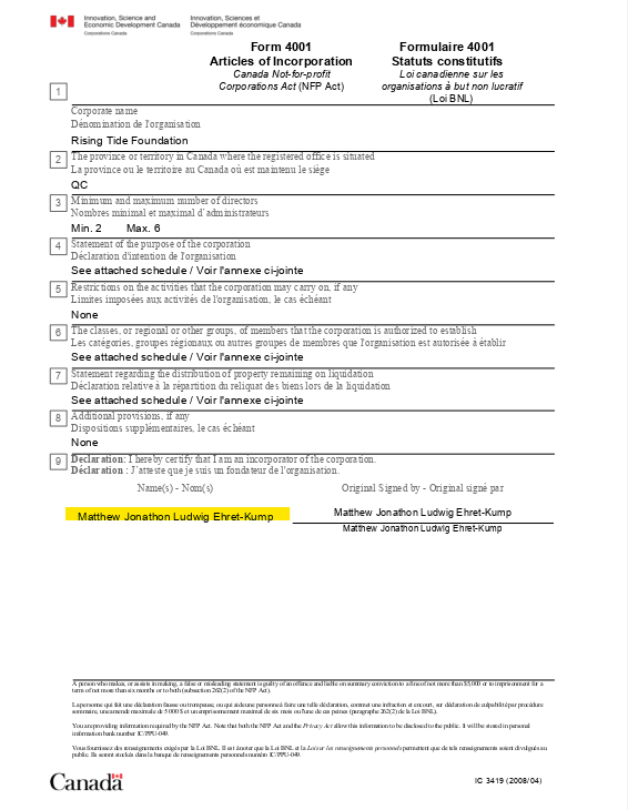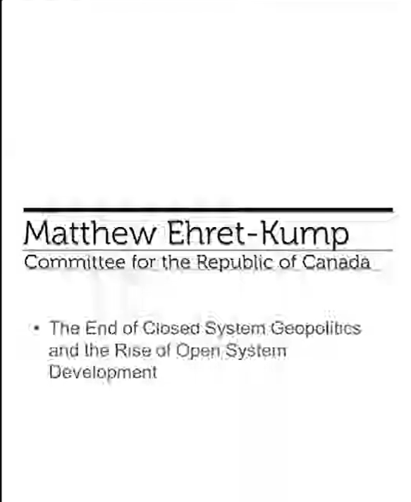 To wrap up this section, it is also worth mentioning that earlier in his Career Mr. Ehret-Kump was also active in an organisation called Committee for the Republic of Canada. The organisation describes itself as: