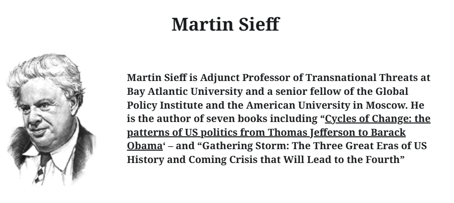 Martin Sieff is a seasoned international affairs author and commentator. He is now working as the Senior Fellow at the American University in Moscow. He served as Managing Editor, International Affairs, Chief News Analyst, Defense Industry Editor, and Chief Political Correspondent at United Press International (UPI) from 1999 to 2009. He was Chief Foreign Correspondent for The Washington Times as its Soviet and East European correspondent covering the collapse of communism from 1986 to 1992, and then its State Department correspondent from 1992 to 1999.