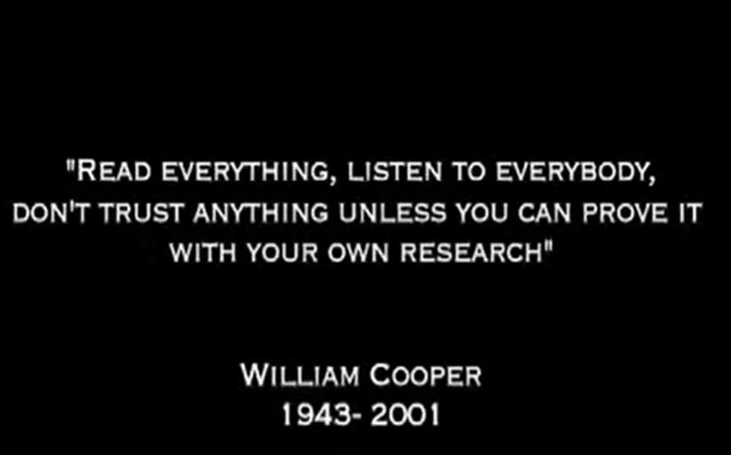 I will leave you with this timeless quote by legendary conspiracy researcher Milton William "Bill" Cooper: