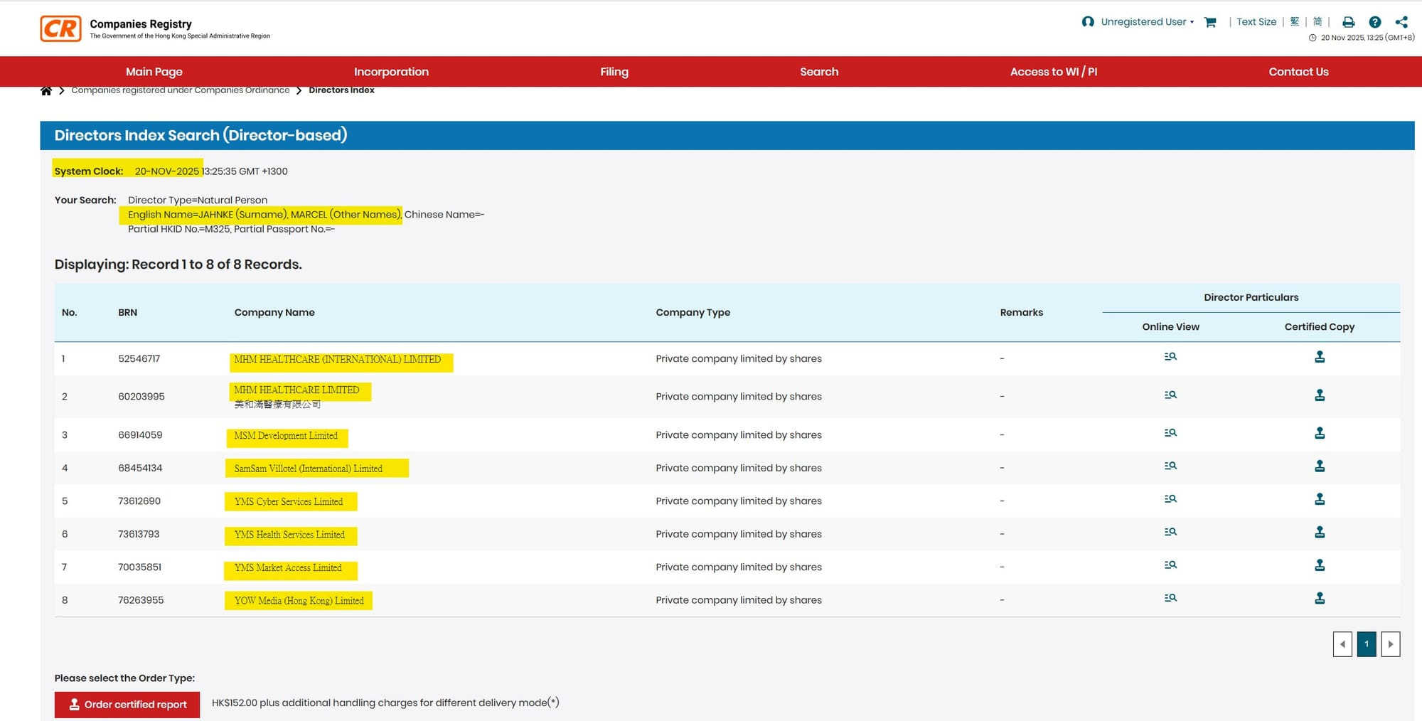 As an example, one of the companies both Marcel Jahnke AND Pui Chi Chan appear to be directors of is MHM Healthcare (International) Limited which was incorporated in 2010.