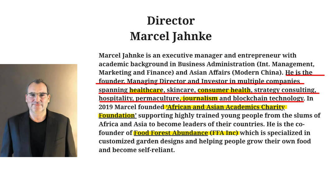 In a May 2023 interview (paywalled) Mr. Jahnke gave to Carl Zha he stated that his career accelerated when he lead the establishement of a China subsidiary of a Japanese pharmaceutical company in China. Mr. Jahnke said that he started this company back in 2010 which is the same year MHM Healthcare (International) Limited was established.
