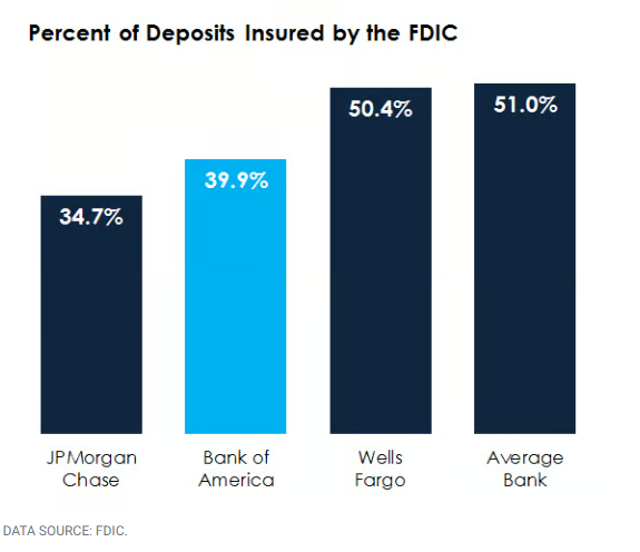 The analysts at Motley Fool went through the FDIC’s own database (which you can access here) to figure out what percentage of the total deposits in America’s three biggest banks are technically insured by the FDIC and have come up with the following: