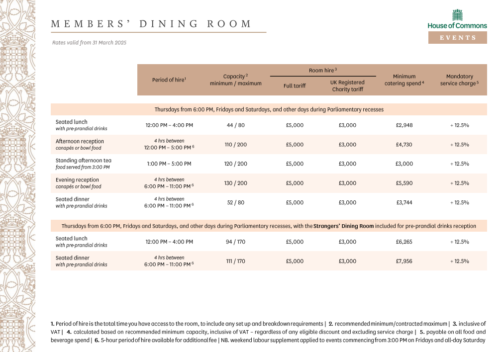 In case you weren’t aware, since 2019, some of the UK Parliament buildings are now available for private hire. This is why any entity with enough £££ can now book the Members’ Dining Room at the House of Commons.