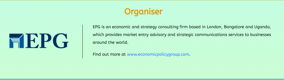 EPG is an economic and strategy consulting firm with offices in the UK, India and Uganda, which offers market entry advisory, strategic communications, trade and investment promotion, economic analysis and corporate events to businesses and governments across the world.
