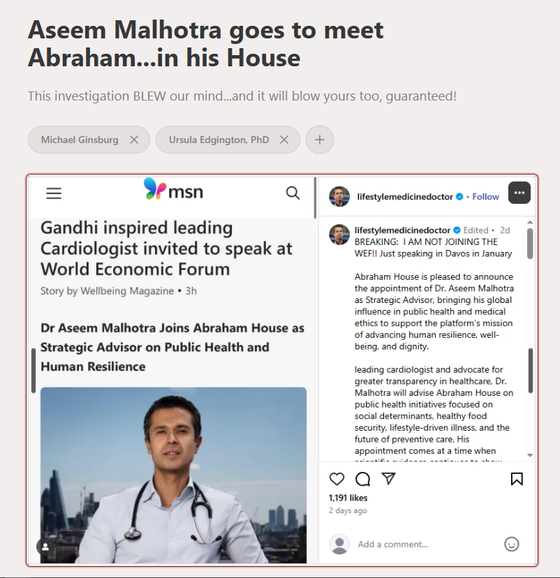 We initially thought we could fit into a single article both Abraham House AND the other various troubling aspects around the career and roles of Dr. Aseem Malhotra. However, it soon became apparent that this was not to be.