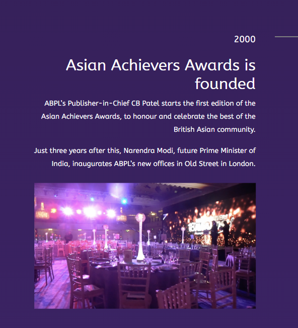 The Asian Achievers Awards was formally started in the year 2000: