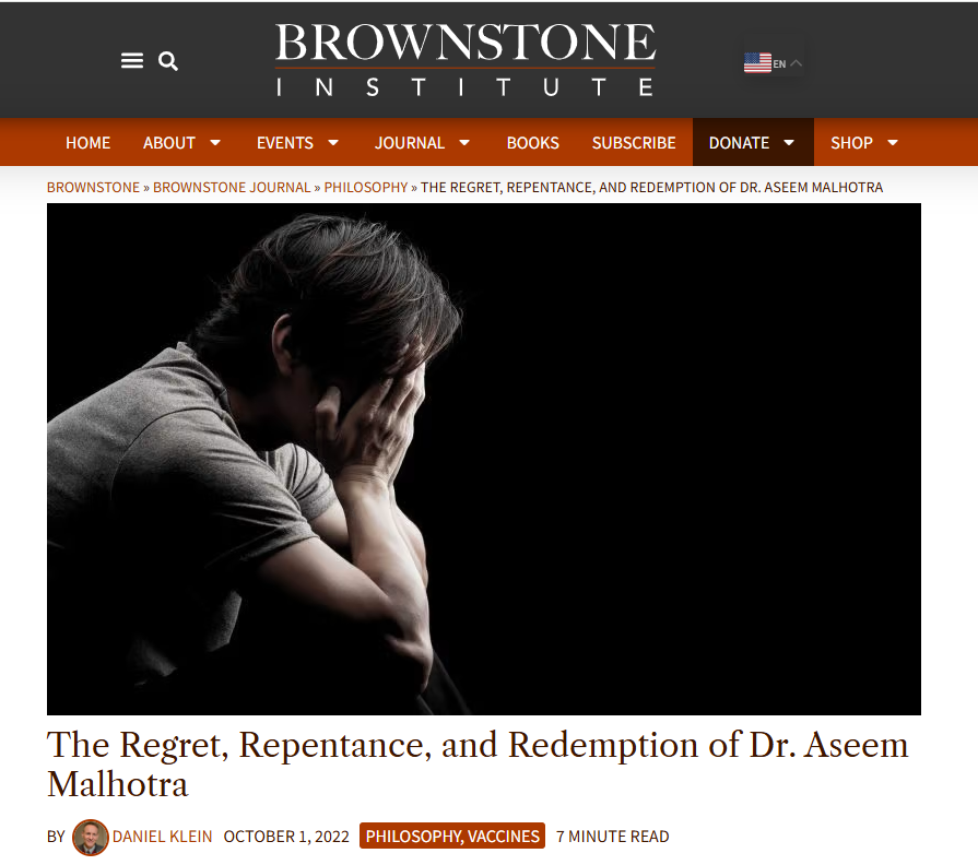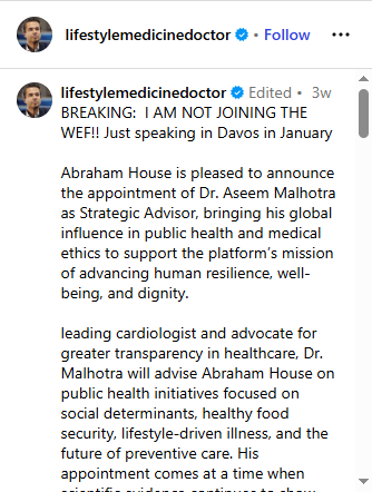 Dr. Malhotra’s PR team were probably hoping the above ‘interview’ (air quotes because this was NO real interview!) with his “friend”, former Nursing teacher also turned “Covid dissident” (supposedly) Campbell, who was also heavily involved in helping him promote his “First, do no pharm” documentary, was going to help alleviate people’s concerns following the news that Dr. Malhotra will be speaking at the WEF. However, let’s just say that things didn’t quite work out that way.