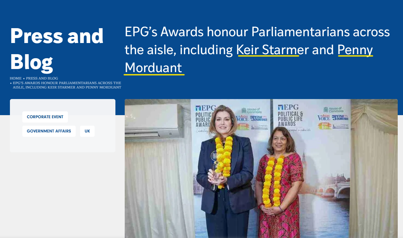 Global advisory firm EPG’s Political and Public Life Awards sought to honour outstanding and capable leaders from across political and public life at the House of Commons.