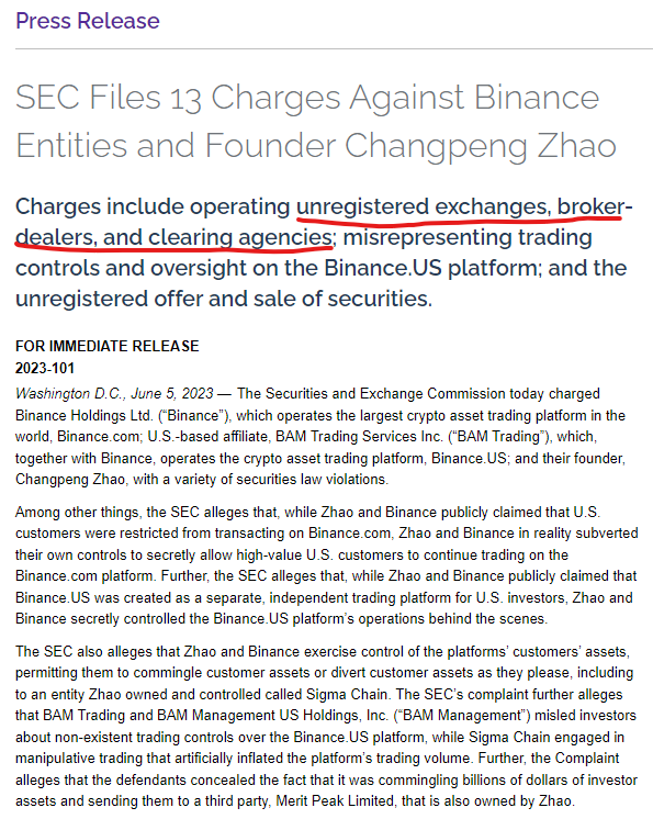 Let’s start with this press release by the US Securities and Exchange Commission (SEC) from just over three weeks ago regarding action they are taking against Binance, one of the biggest cryptocurrency exchanges in the world and more specifically, one of the biggest providers of exchange facilities between cryptocurrencies and government-issued currency such as the US Dollar, Euro and Pound (also known as “Fiat currency”):