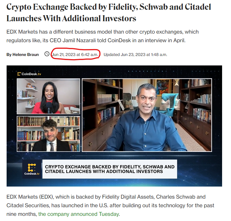 Remember, Schwab, Fidelity and Citadel which are the three major TradFi players behind this brand new crypto exchange have launched EDX Markets at around the same time that both Binance and Coinbase (a publicly listed company) are facing some major headwinds due to moves by the US government.