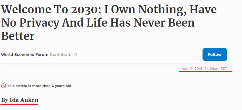 Below is my personal adaptation of the 2016 ‘opinion piece’ written by WEF mouthpiece and graduate of their Young Global Leaders program, Ida Auken.