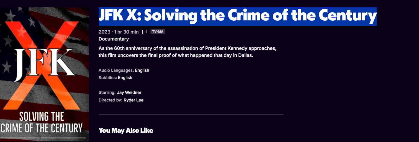 Other documentaries that take a more ‘traditional’ approach to the JFK assassination conspiracy (i.e. that he was actually killed instead of faking his own death) that I personally found interesting are: