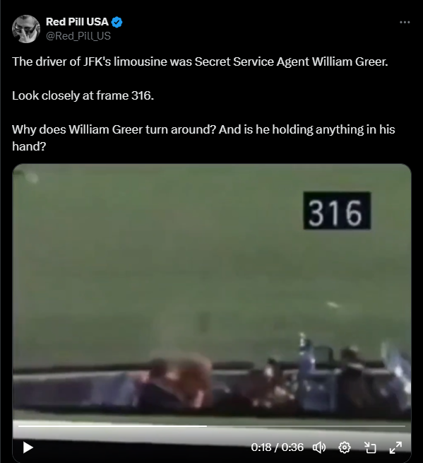 JFK, with the full knowledge and collaboration of his wife Jackie faked his own death by pressing a blood squib (a.k.a bullet hit squib) with fake blood to his head and key parts of the famous Zapruder film were edited out in order to hide that.
