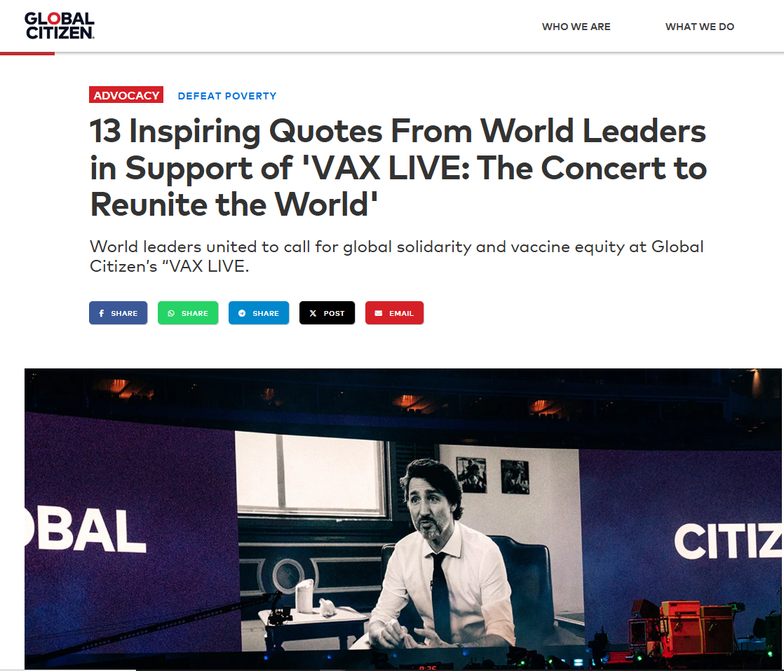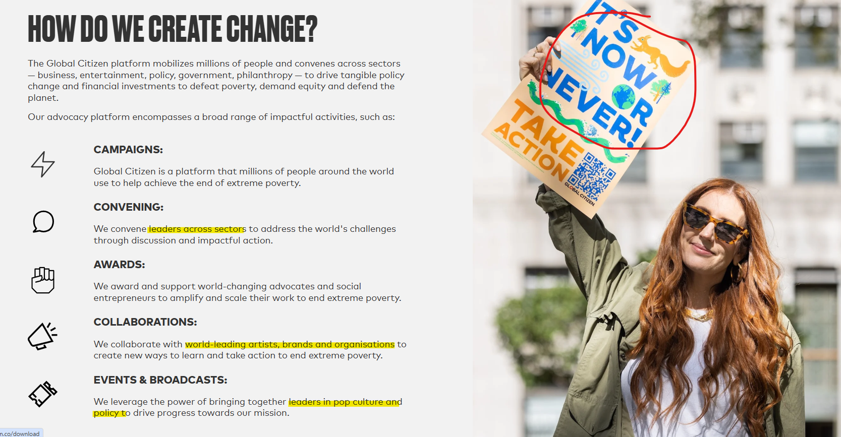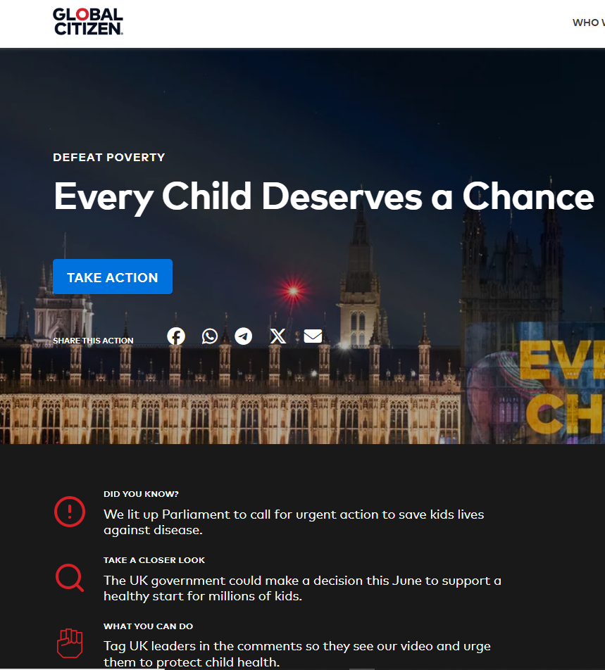 “Global Citizen” have a page on their website dedicated to showcasing their “impact”. “Impact” is definitely a trigger word and once you read the piece below, you will also understand why.
