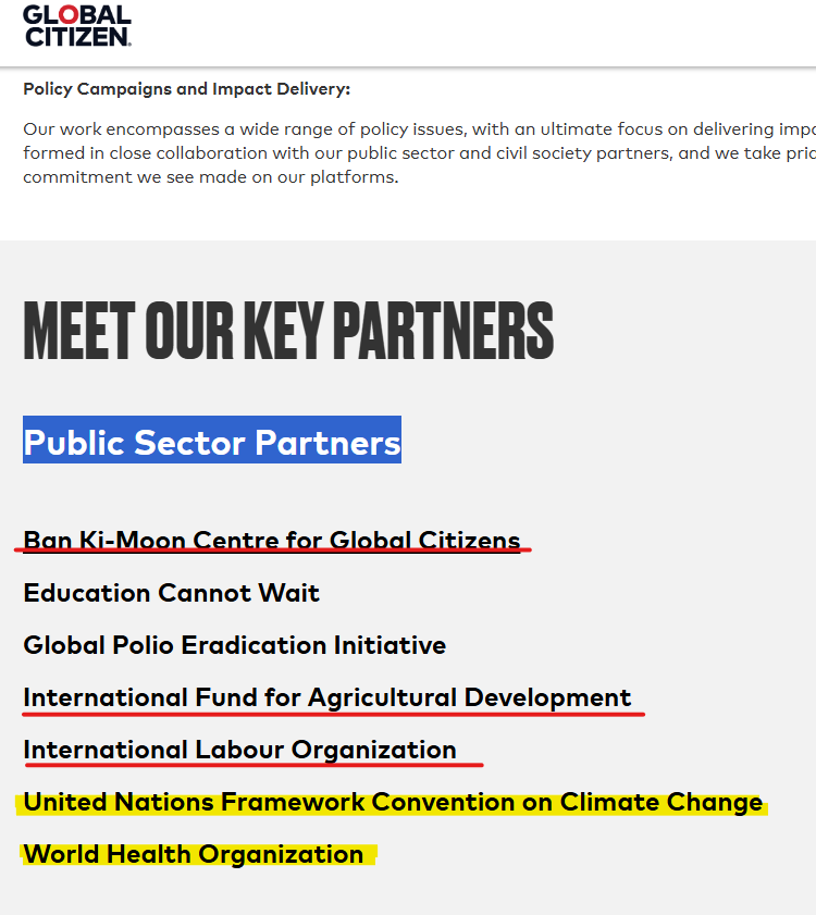 Here are the “Key Partners” of Global Citizen within Public Sector & Civil Society: