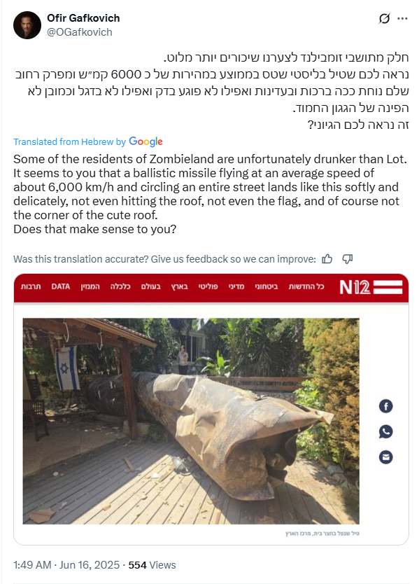The above image is a screenshot from an Israeli legacy media broadcast. The graphics shows the various missiles and UAVs in Iran’s arsenal (allegedly), the time it will take them to reach Israel (supposedly) and the ‘safe & effective’ countermeasures Israeli air defence will deploy against each.