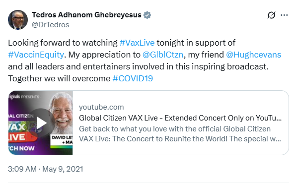Right, so Gates, Soros, Bezos, the UN and the psychopathic mass murderers at the WHO are all onboard and are “all in”.