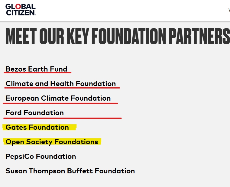 Ok, so with “partners” like this, the ‘projects’ Global Citizen does should come as no surprise. Here is a small sample.