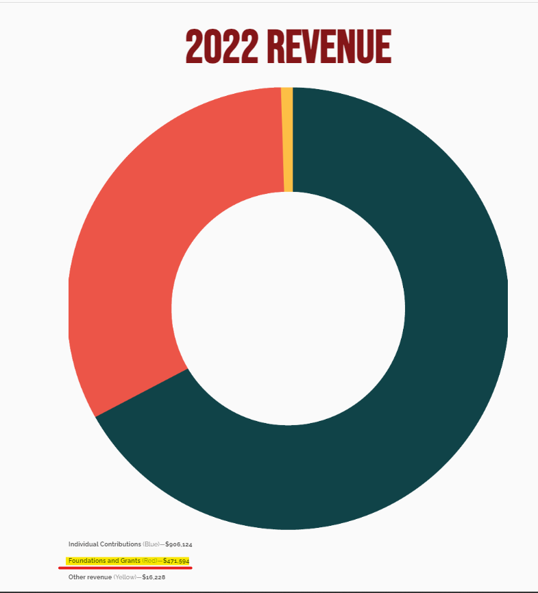 Given the nature of their activities, it is fairly easy to ascertain which foundations provide this entity with grants (again, assuming you understand how the enemy operates and who does what within their network) but in case you are struggling, refer to the note above.