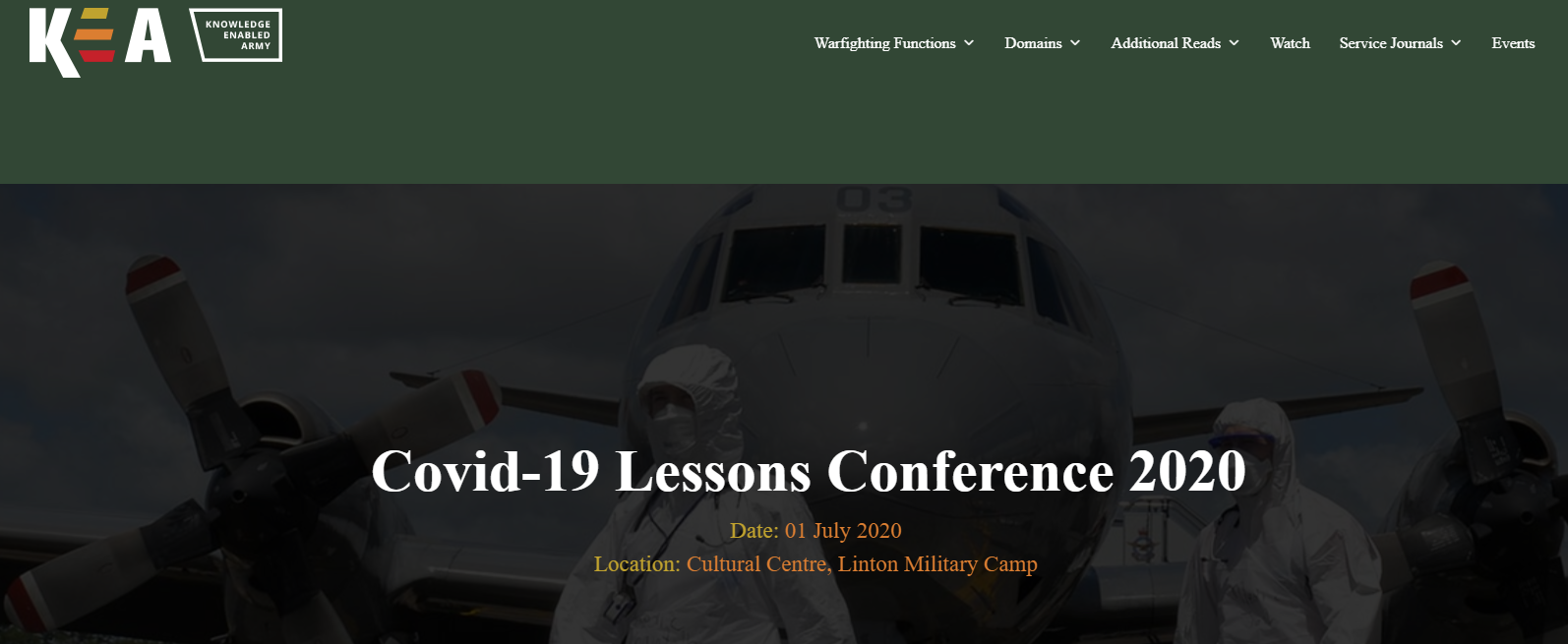 This all-day conference with over 250 personnel from the ABCANZ Armies was called ‘Covid 19 Lessons’: