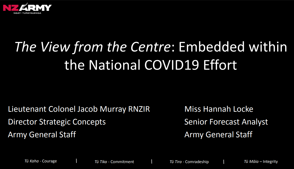 “The key takeaway for NZDF personnel who are seconded into this environment is that a pandemic response is more akin to a military operation than other natural hazards.”