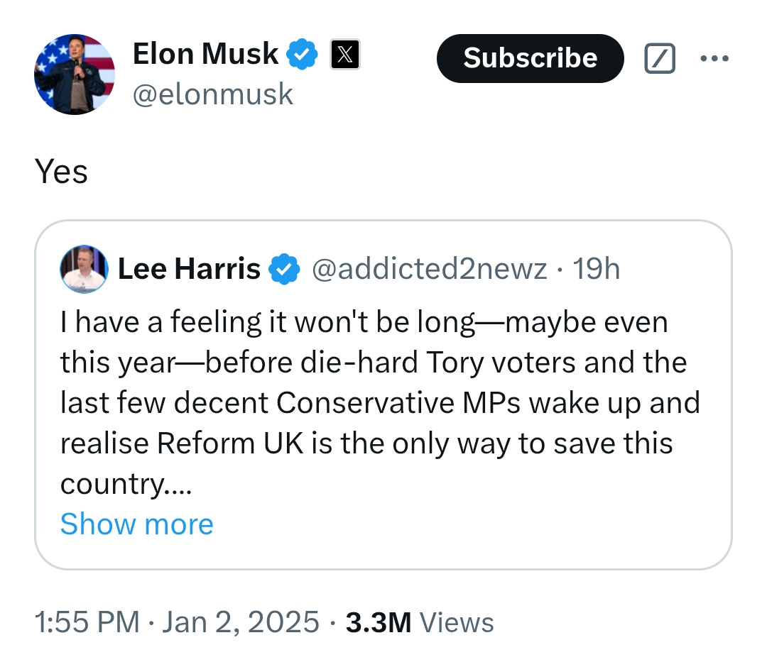Regardless of what the likely next Prime Minister of the UK thinks, Musk is doubling down: