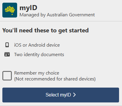 At the moment “MyID” (formerly “MyGovID”) is offered as an option to login to the Australian government’s MyGov online portal which gives access to services such as lodging a tax return and applying for various social security payments.